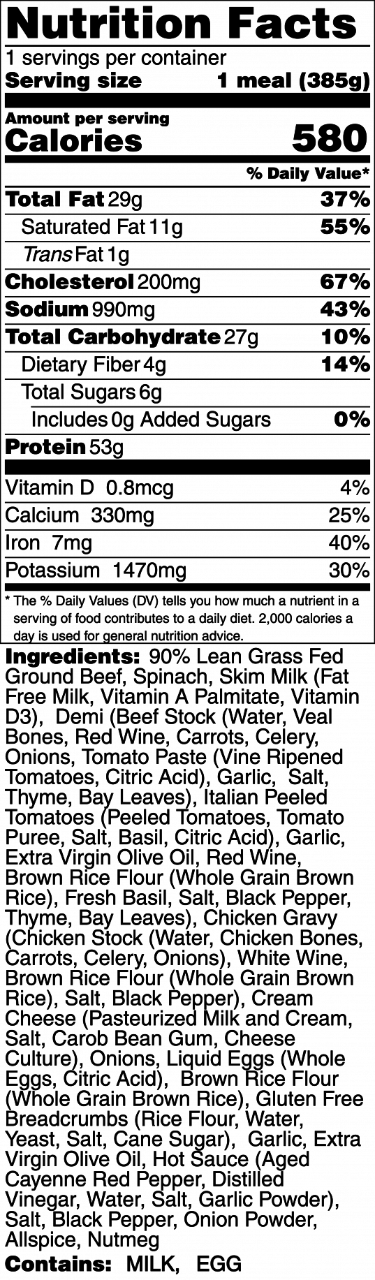 Beef Swedish meatballs made with 90% lean grass fed ground beef, topped with a rich, flavorful bone broth gravy and served alongside low fat creamed spinach.